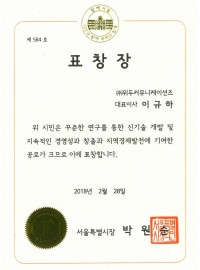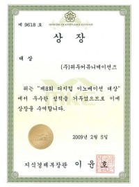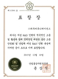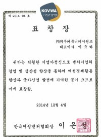 Korea Venture Business Womens Association Award Certificate