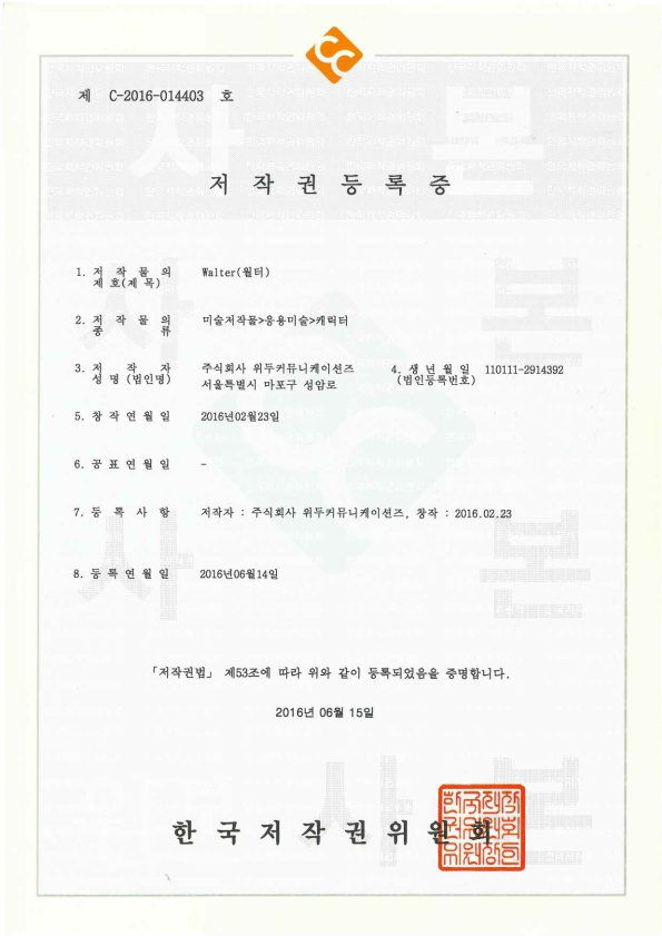 [한국/저작권] 월터 페이지 정보 작성자 WeDu 댓글 0건 조회 6,096회 작성일 19-05-30 19:09 본문 2016-06-15 저작권 C-2016-014403 월터 / 미술저작물>응용미술>캐릭터 List Previous[한국/저작권] 파벨 19.05.30 Next[한국/저작권] 필립 19.05.30